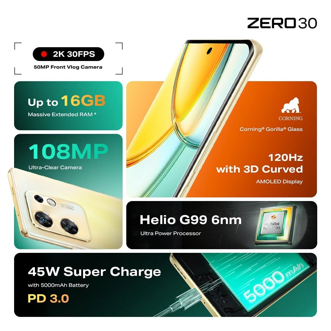 Kehebatan kinerja Infinix Zero 30 terletak pada prosesor MediaTek Helio G99 dan RAM 8 GB. Pasangan dinamis ini memfasilitasi multitasking yang lancar, peluncuran aplikasi yang mulus, dan navigasi yang responsif, semua berkontribusi pada pengalaman pengguna yang ditingkatkan.