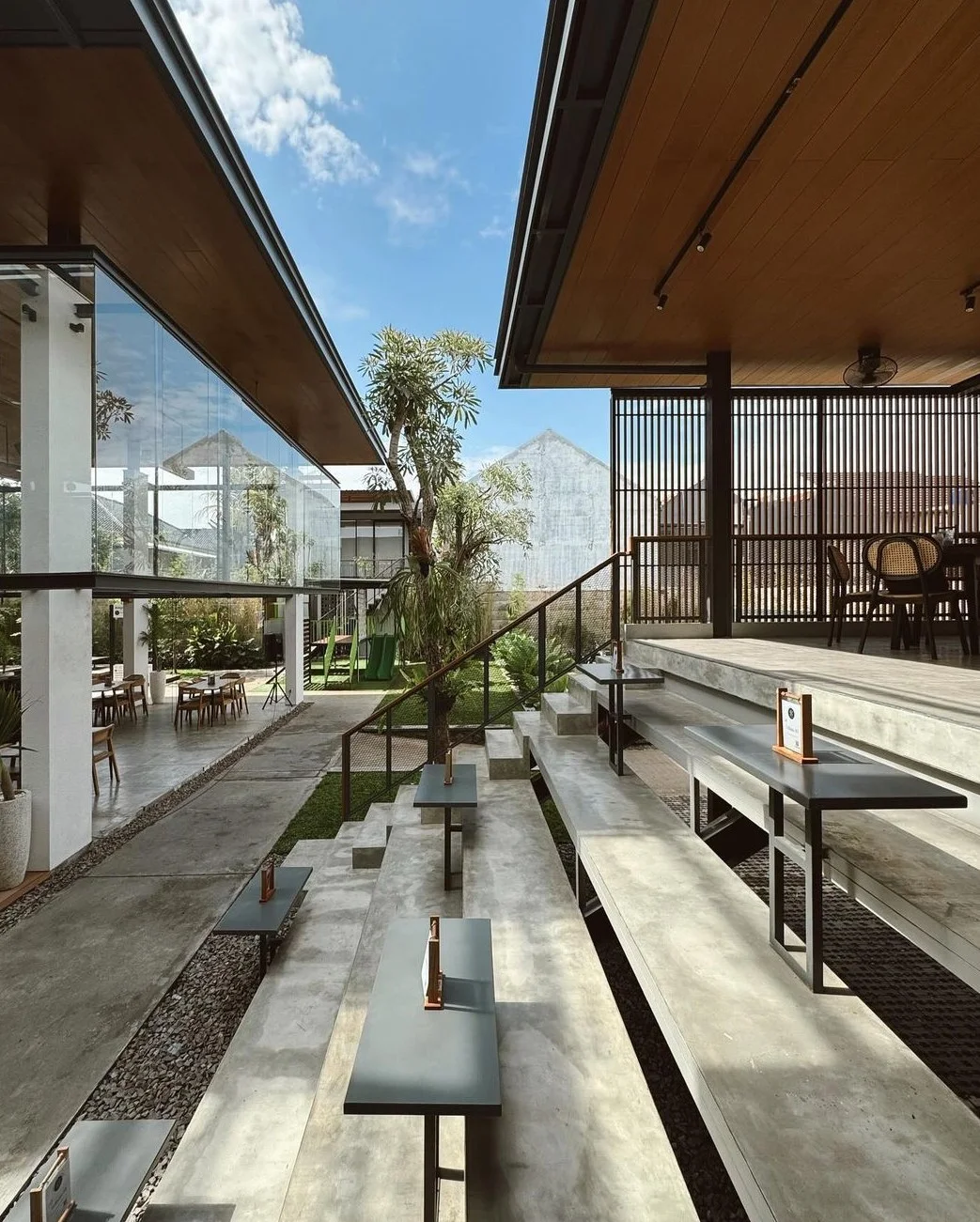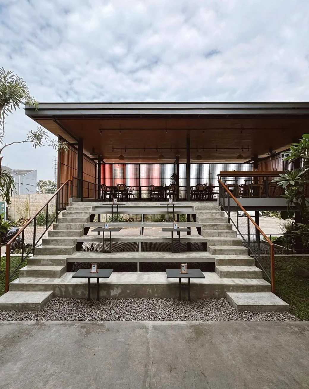 Keunikan kedai kopi ini tak hanya dari menu yang disajikan, tapi juga dari desain bangunannya. Konsep industrial modern dengan tribun iconic dan playground-nya membuatnya tampak begitu memesona. Setiap sudut di tempat ini dihiasi dengan sentuhan kekinian, sangat instagramable dan cocok jadi latar foto OOTD kamu.