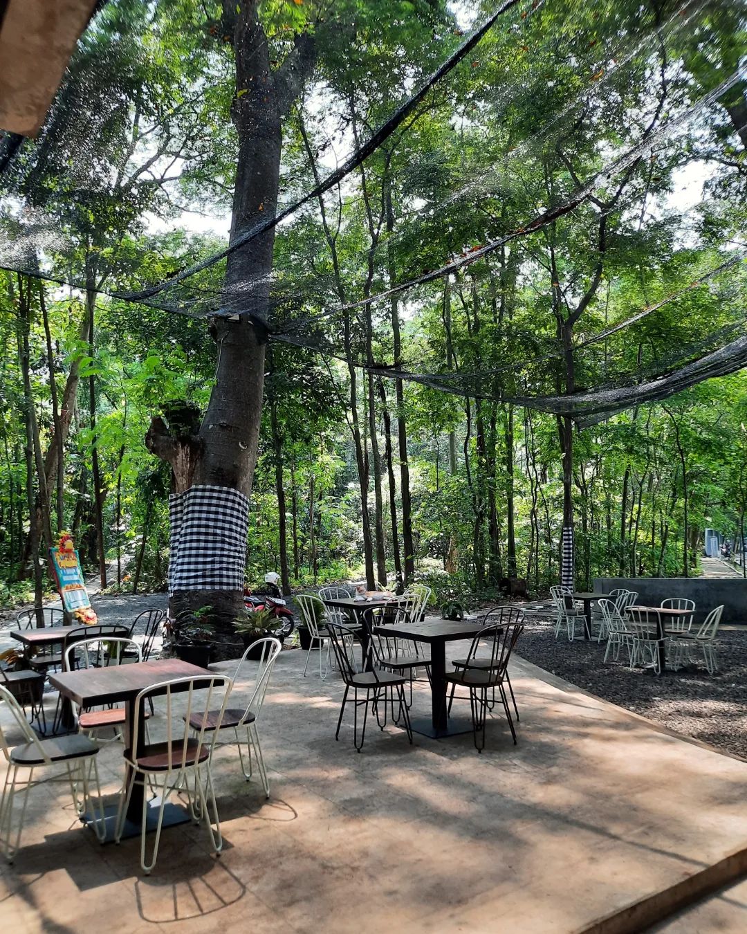 Cafe ini menawarkan dua area yang menggiurkan: indoor yang nyaman untuk bekerja atau berkumpul, dan area outdoor yang menakjubkan dengan pemandangan alam yang menenangkan. Dikelilingi pepohonan hijau, area outdoor adalah spot favorit untuk menikmati udara segar dan pemandangan alam yang memesona.