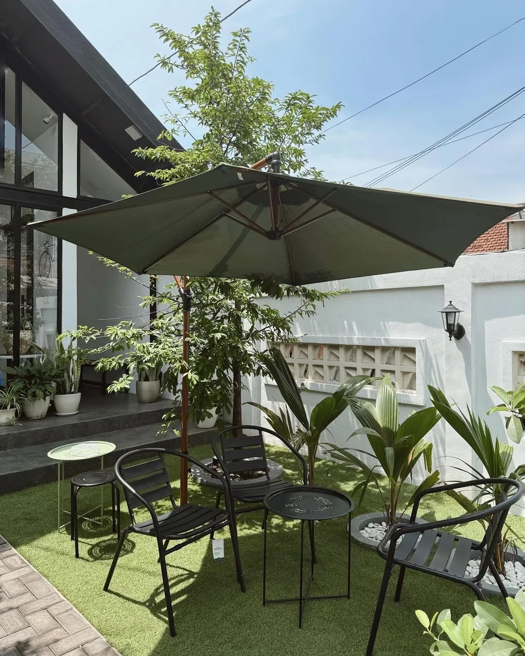 Sedangkan untuk area outdoor cafe di Cimahi yang hits ini terletak diteras yang terdapat cukup banyak seating area tertata rapi. Diarea outdoor tempat nongkrong estetik di Cimahi terbaru ini cocok banget buat tempat nongkrong santai sembari menikmati angin sepoi-sepoi yang menyejukkan.