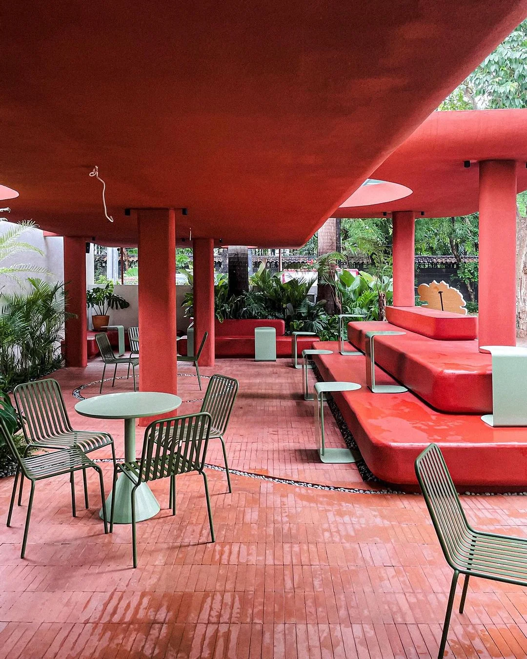 Coffee shop ini menonjolkan daya tarik utamanya melalui desain bangunannya yang modern dengan sentuhan minimalis, didominasi oleh warna merah yang mencolok. Setiap sudut coffee shop ini dihiasi dengan dekorasi yang cantik, menciptakan suasana yang sangat kekinian dan sangat cocok sebagai latar belakang foto Instagramable.