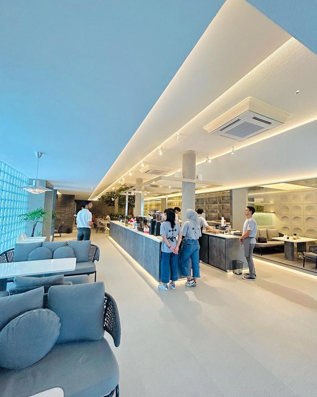Cafe baru di Pekanbaru ini berlokasi di Payung Sekaki, tempat nongkrong ini sangat strategis dengan akses mudah dari pusat kota Pekanbaru. Keunikan utama tempat nongkrong hits di Pekanbaru ini terletak pada desain bangunan yang memukau dengan konsep minimalis modern yang dipadukan dengan dominasi warna putih.