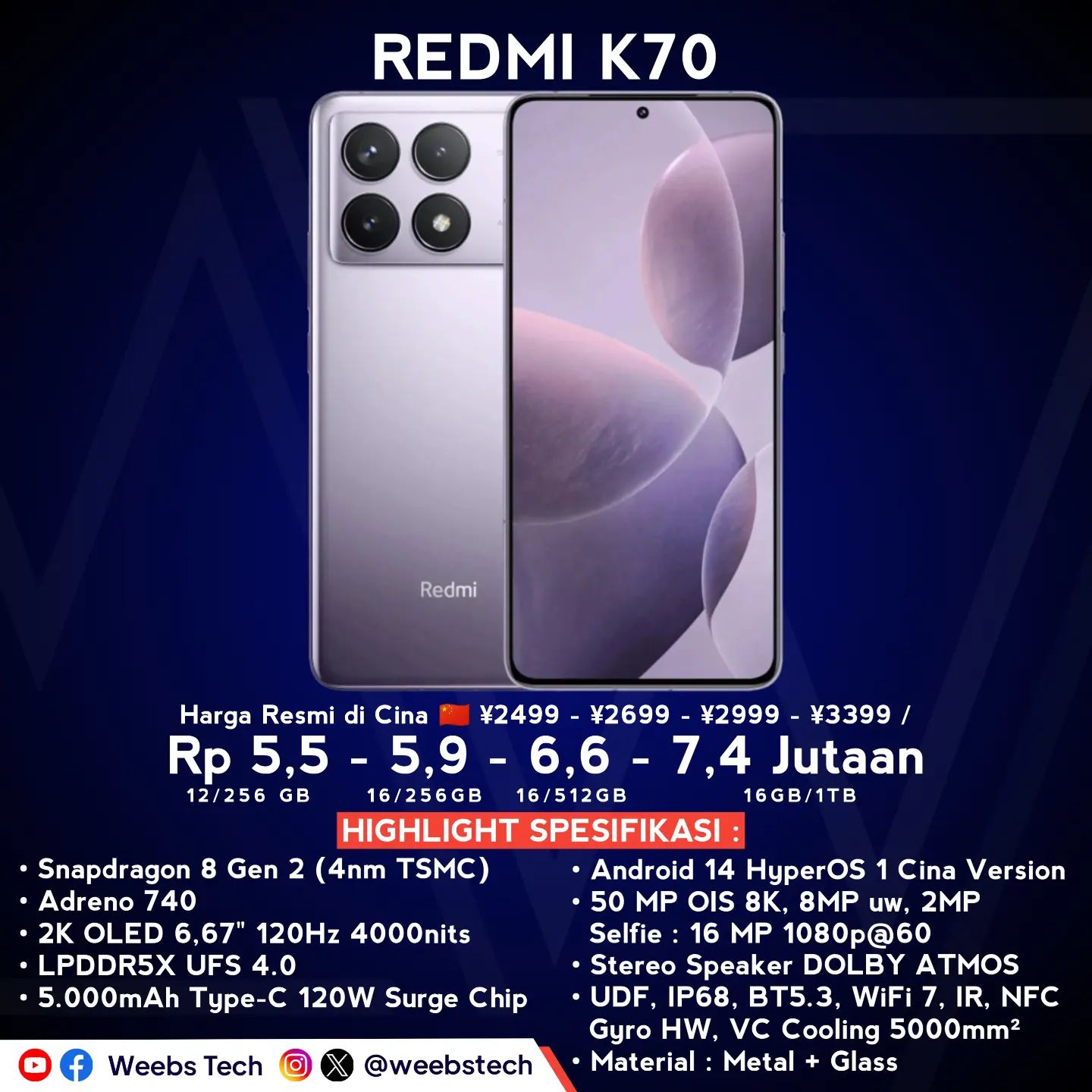 Redmi K70 Harga - Photo By @beritagadget |