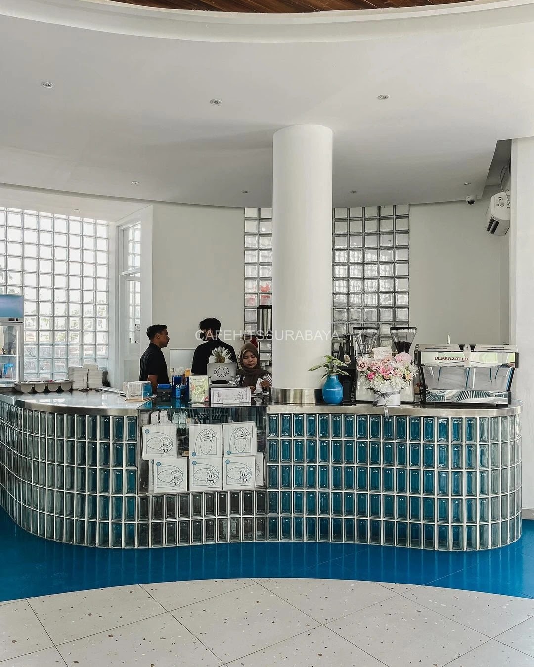 Daya tarik utama dari coffee shop di Surabaya terbaru ini terletak pada desain bangunan yang minimalis modern dengan dominasi warna putih, menciptakan atmosfer yang kekinian dan Instagramable.