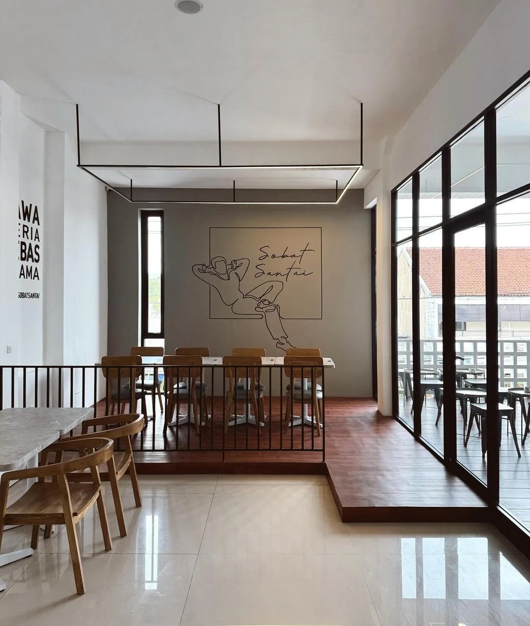 Coffee shop baru di Bandung yang bernama Kopi Sobat Santai Ngamprah menawarkan daya tarik utama berupa lokasi yang strategis, dekorasi bangunan yang minimalis modern, dan dua pilihan area yang nyaman bagi pengunjung, yaitu indoor dan outdoor.