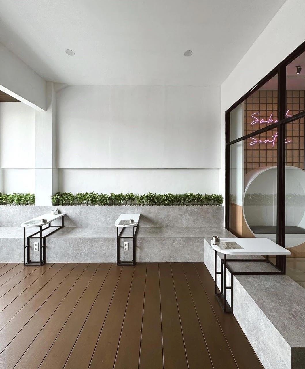 Pengunjung juga dapat menikmati suasana rooftop dengan pemandangan matahari tenggelam yang memukau di area outdoor. Tempat nongkrong kekinian di Bandung ini bukan hanya menjadi tempat nongkrong, tetapi juga menjadi salah satu tempat healing di Bandung, terutama saat cuaca cerah yang memungkinkan pengunjung menikmati udara segar.