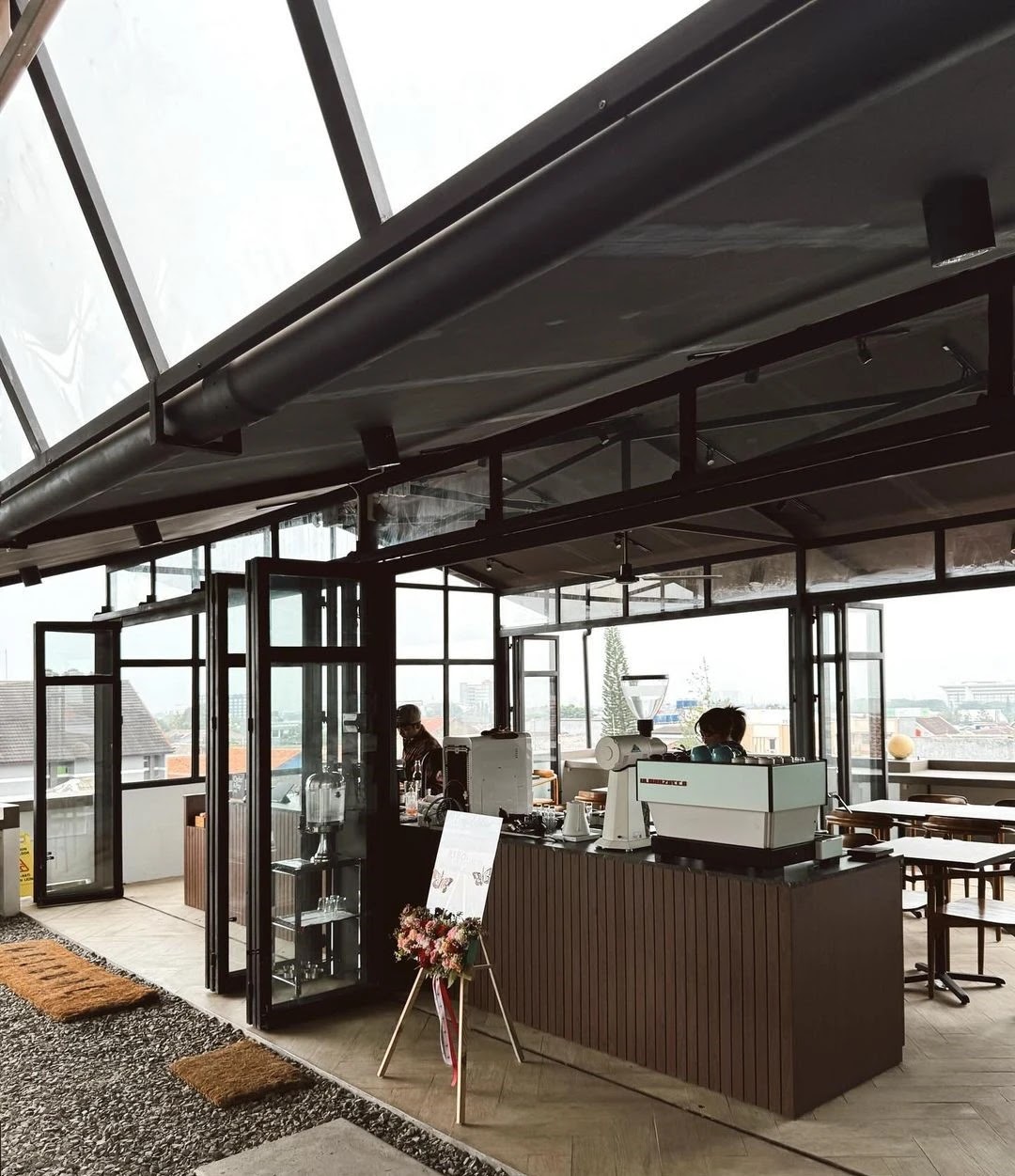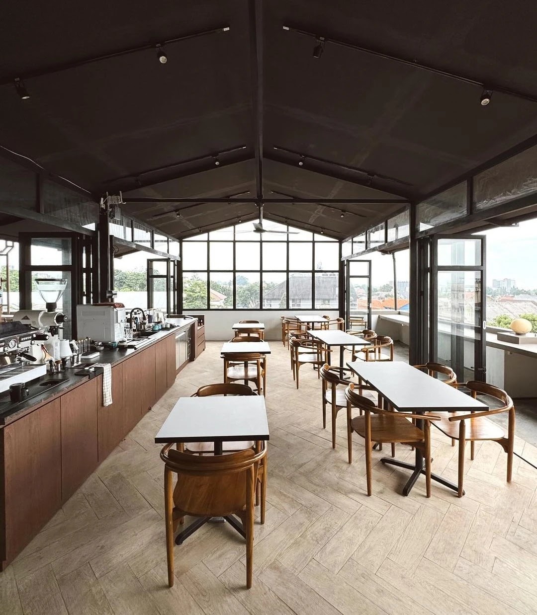 Dengan view bagus dari rooftop, pengunjung dapat menikmati panorama perkotaan Bandung yang memukau. Suasana ini membuat coffee shop di Bandung terbaru ini menjadi tempat nongkrong asyik di Bandung yang sempurna untuk bersantai dan menikmati secangkir kopi.