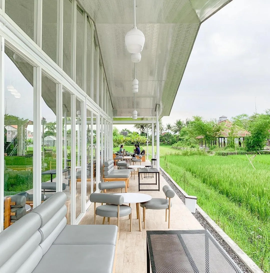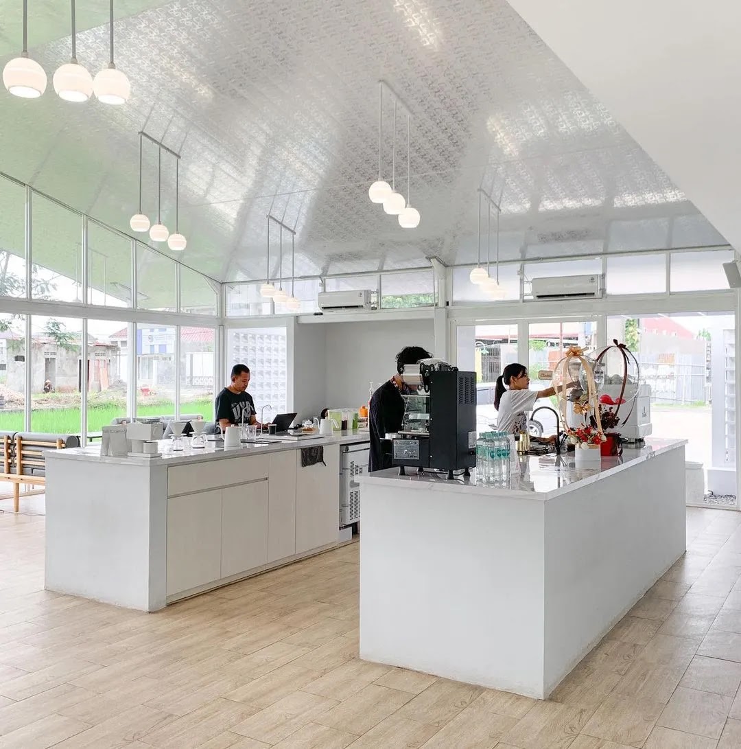 Keistimewaan tempat nongkrong hits di Jogja ini tidak hanya pada lokasinya, tetapi juga pada desain bangunannya yang mengusung konsep minimalis modern dengan dominasi warna putih.