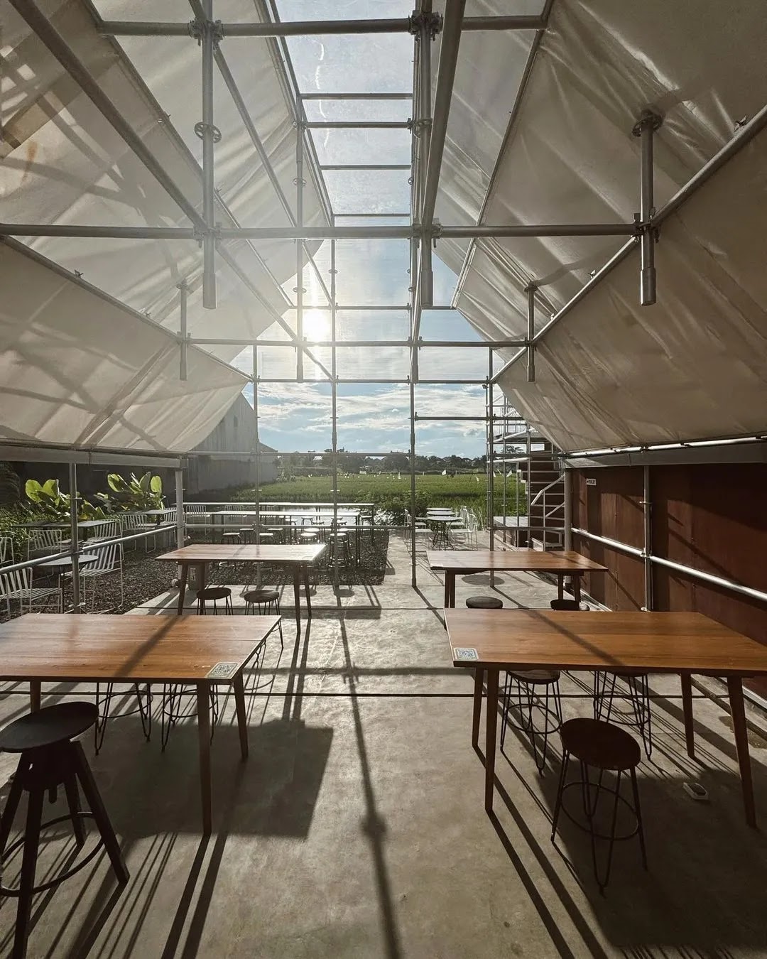 Daya tarik utama dari coffee shop kekinian di Bandung ini adalah desain bangunannya yang mengusung konsep minimalis modern dengan view sawah yang menyegarkan. Disetiap sudut tempat nongkrong kekinian di Bandung terbaru ini didekor dengan sangat cantik yang tampak kekinian dan instagramable.