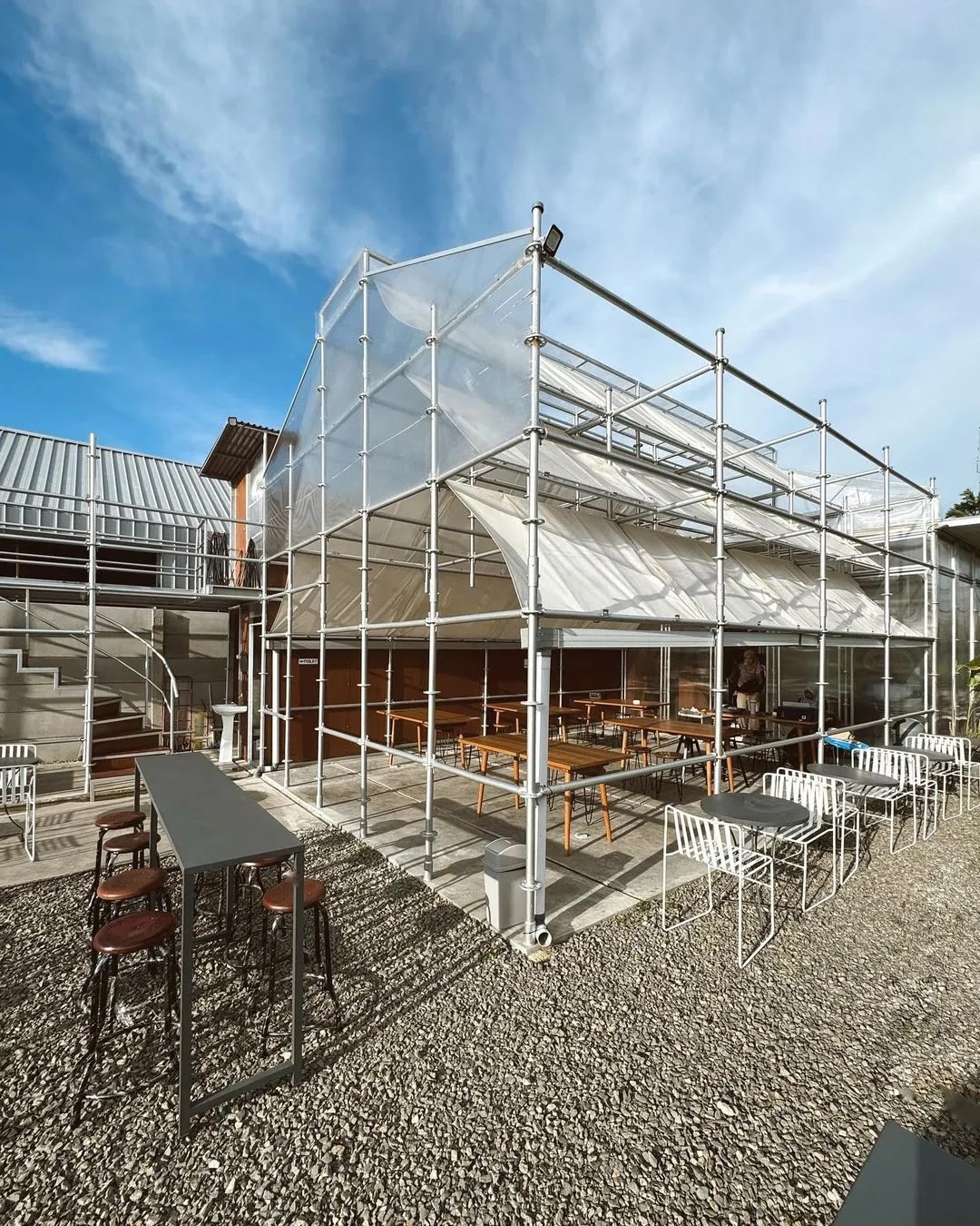 Untuk area outdoor coffee shop di Bandung terbaru ini terletak dihalaman dan dilantai atas yang terdapat banyak seating area tertata rapi. Diarea outdoor tempat nongkrong estetik di Bandung ini cocok banget buat tempat nongkrong santai sembari menikmati angin sepoi-sepoi yang menyejukkan.