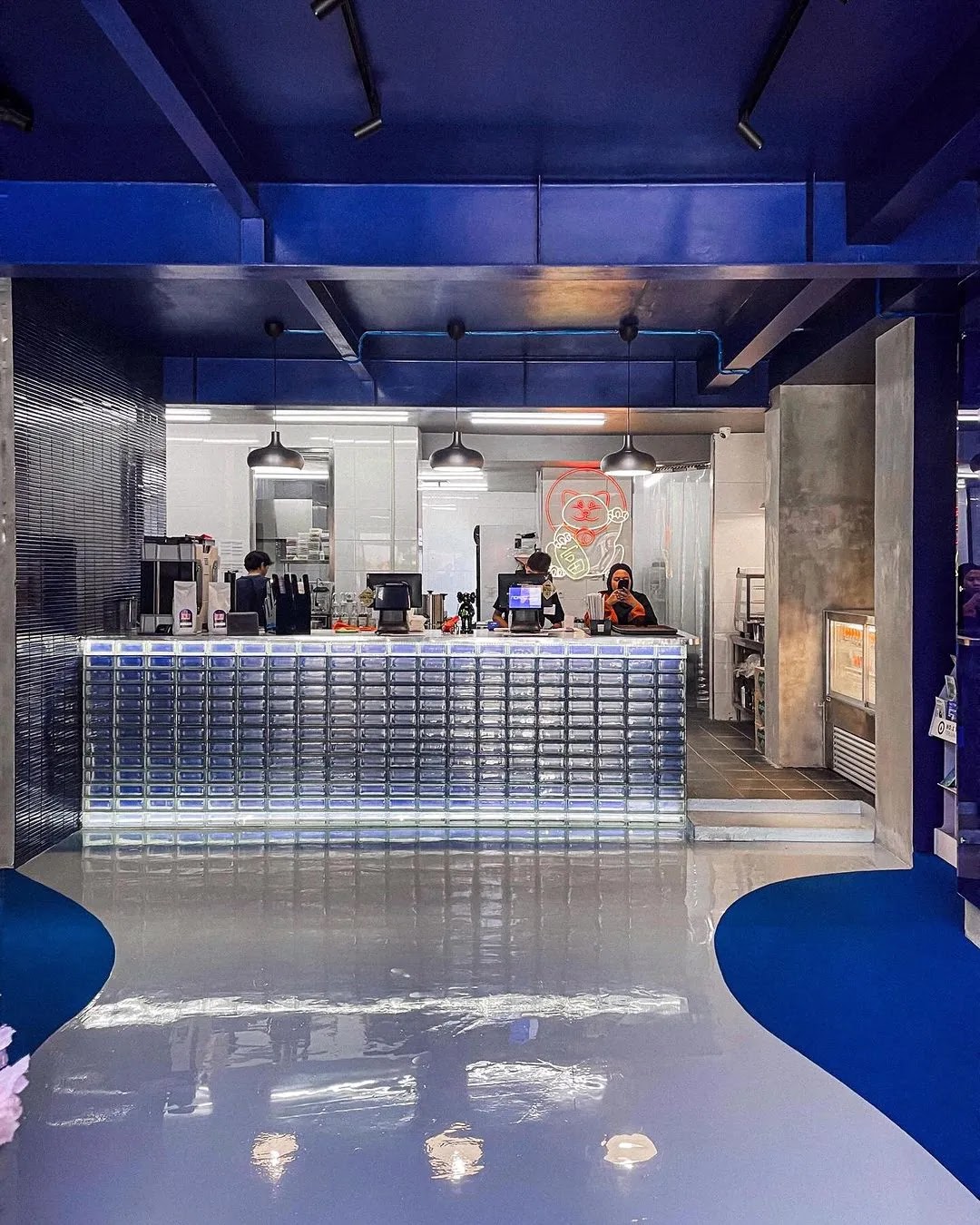 Salah satu daya tarik utama dari coffee shop kekinian di Jakarta adalah desain bangunan yang minimalis modern dengan dominasi warna biru, menciptakan suasana yang instagramable dan cocok sebagai latar belakang foto OOTD Anda.